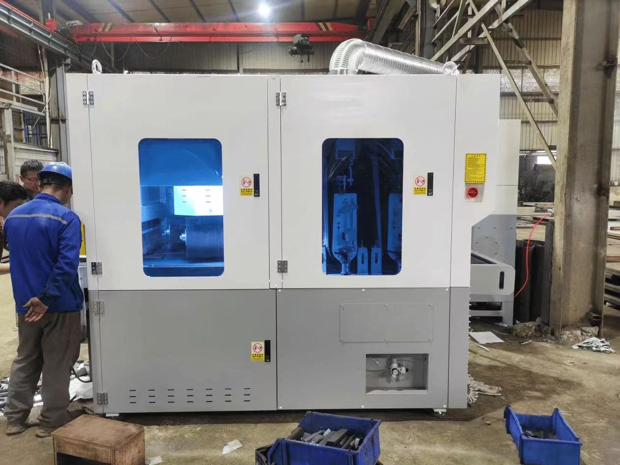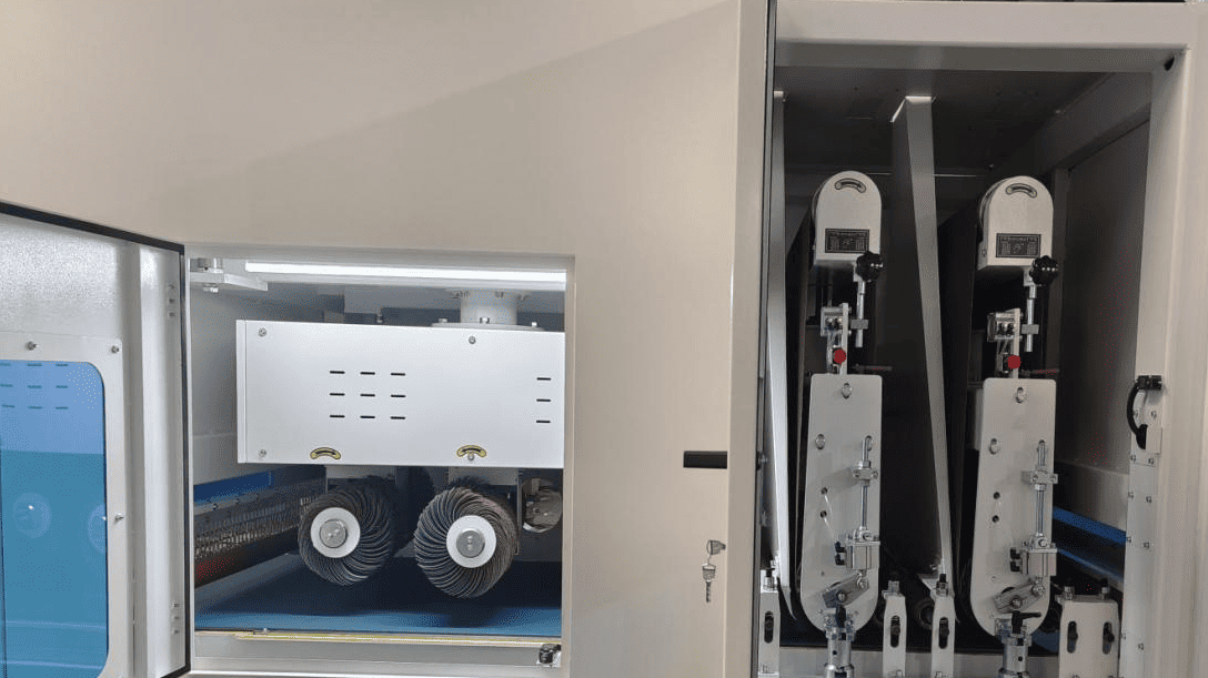 Το μηχάνημα αφαίρεσης και λοξοτομίας έχει σχεδιαστεί ειδικά για την επιφανειακή επεξεργασία των εξαρτημάτων ανθρακούχου χάλυβα. Διαθέτει έναν καινοτόμο συνδυασμό δύο ομάδων ευρείας λειαντικών ιμάντων για αφθονία και τέσσερις καθολικές περιστροφικές βούρτσες για λοξοτομία. Αυτός ο σχεδιασμός εξασφαλίζει αποτελεσματική και ακριβή απομάκρυνση των επιφανειακών burrs, ενώ επιτυγχάνει το λοξοτομείο και το βούρτσισμα της επιφάνειας, βελτιώνοντας σημαντικά την ποιότητα της επιφάνειας και την εμφάνιση του τεμαχίου εργασίας. Το μηχάνημα DEBURRING & BRINKERS πληροί τις απαιτήσεις ακρίβειας και ποιότητας της θεραπείας επιφάνειας του ανθρακούχου χάλυβα σε διάφορες βιομηχανίες, ενισχύοντας τόσο την αποδοτικότητα της παραγωγής όσο και την αξία του προϊόντος. Οι παράμετροι μπορούν να ρυθμιστούν ανάλογα με διαφορετικές ανάγκες επεξεργασίας και οι κατάλληλες λειαντικές μπορούν να επιλεγούν ανάλογα. Το μηχάνημα αφαίρεσης μετάλλων είναι εξοπλισμένη με έναν συλλέκτη υγρής σκόνης 5,5kW. Μέθοδος απομάκρυνσης σκόνης: Η σκόνη που παράγεται κατά τη διάρκεια της λειτουργίας εξάγεται αποτελεσματικά μέσω μιας θύρας συλλογής σκόνης, εξαλείφοντας το μεγαλύτερο μέρος της σκόνης, αποτρέποντας τους πιθανούς κινδύνους έκρηξης σκόνης και διατηρώντας την εσωτερική δομή καθαρή.